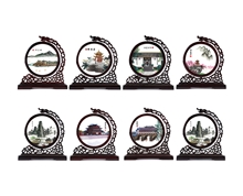 金霞绣庄纯手工湘绣潇湘八景圆屏双面绣桌面摆件湖南景点风景画 BJ102