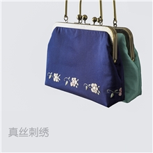 金霞湘绣纯手工刺绣真丝手提包绣花零钱包包仿古铜提手晚宴会包BD204