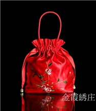 绣坊街真丝面料手工绣花提袋抽绳收纳