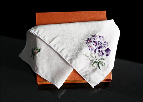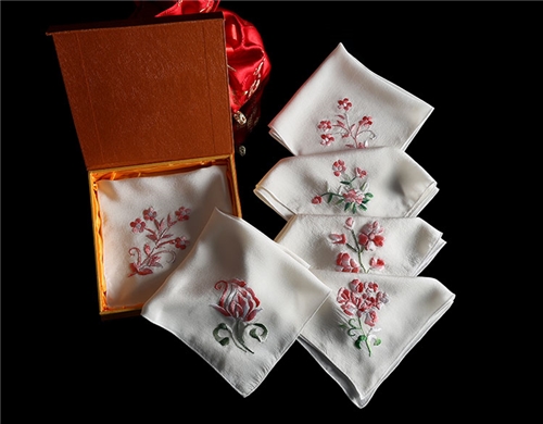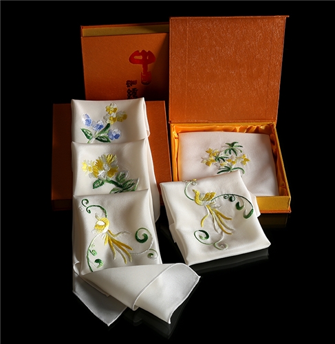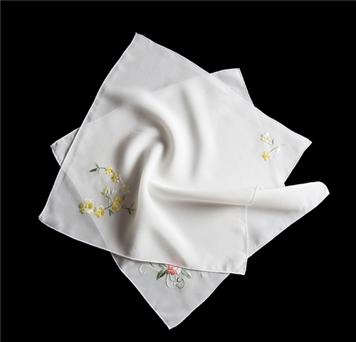 金霞湘绣纯手工双面刺绣高档真丝白色方巾小手帕出国礼品非苏绣 SJ308