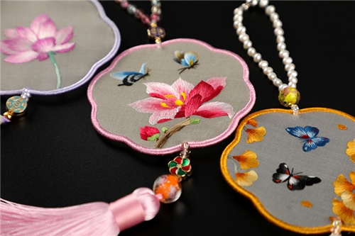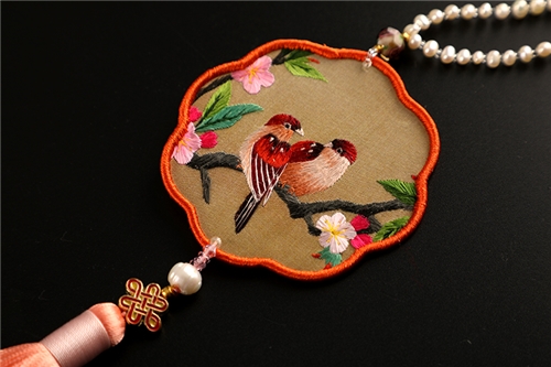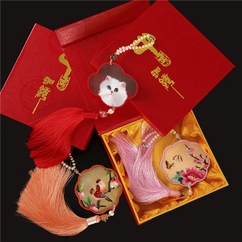 湘绣纯手工双面刺绣珍珠流苏汽车小挂饰包包装饰挂件实用伴手礼品 DZ403